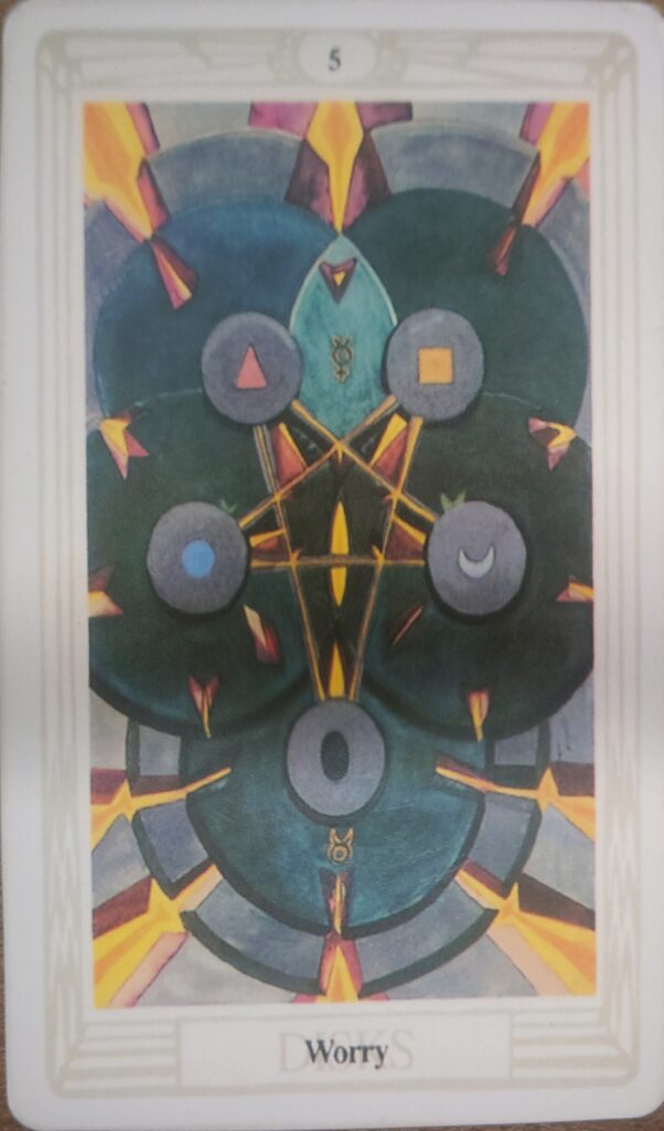 Don’t be disheartened by the presence of the five of disks. Although its generally not a pleasant card to deal with, it is very good at pointing out where you’re going wrong and how to fix it.